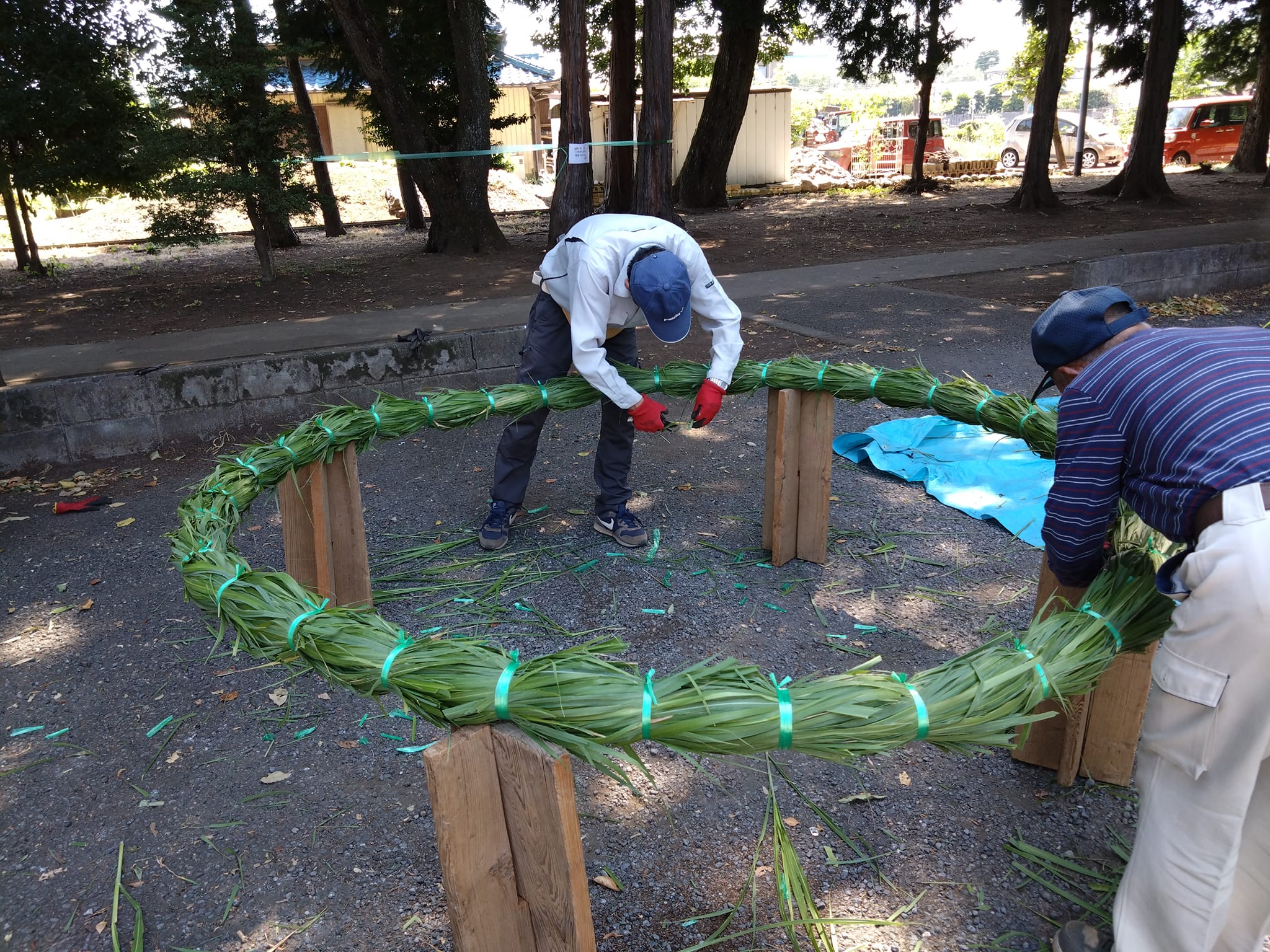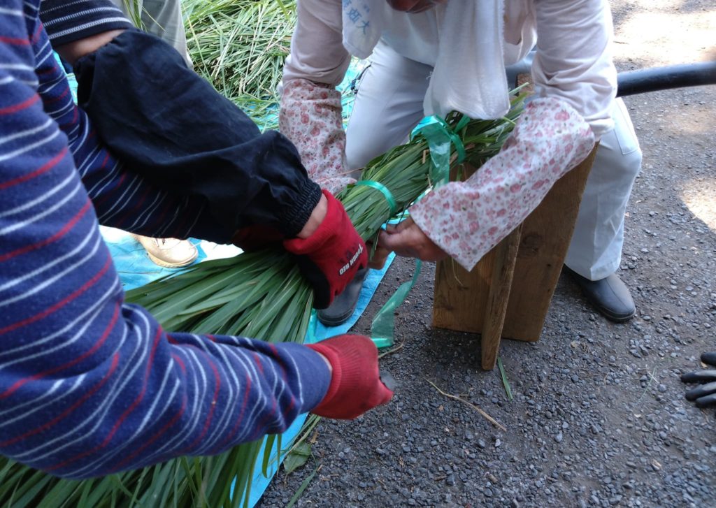 2023年 主な活動 地域行事参加 tanishin-webmaster 2023-07-31 昨日は駒林八幡神社の夏越の大祓(茅の輪くぐり)。茅の輪の材料となる茅萱の刈取りをして先輩方に茅の輪づくりを教えていただきました。祭典では茅の輪を左まわり、右まわりの順で8の字にまわり、本殿に人形(ひとがた)を納め、無病息災、家内安全を祈願しました。