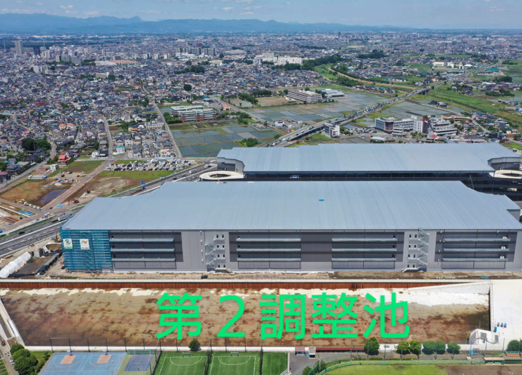 昨夜、確認できなかった第2調整池もしっかり雨水を溜め込み、効果を発揮していました。